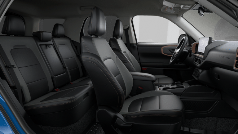 - Bronze Package: Cargo Mat with Bronze Accents; Painted Shadow Black Roof; 17" Sinister Bronze-Painted Aluminum Wheels; Bronze Badges; Premium Wrapped Steering Wheel; All Weather Floor Liners with Bronze Accents; Carbon Black Grille with Black Painted BRONCO Lettering; Body-Color Door Handles; Premium Trimmed Front Sport Contour Bucket Seats; Bronze Fender Vent